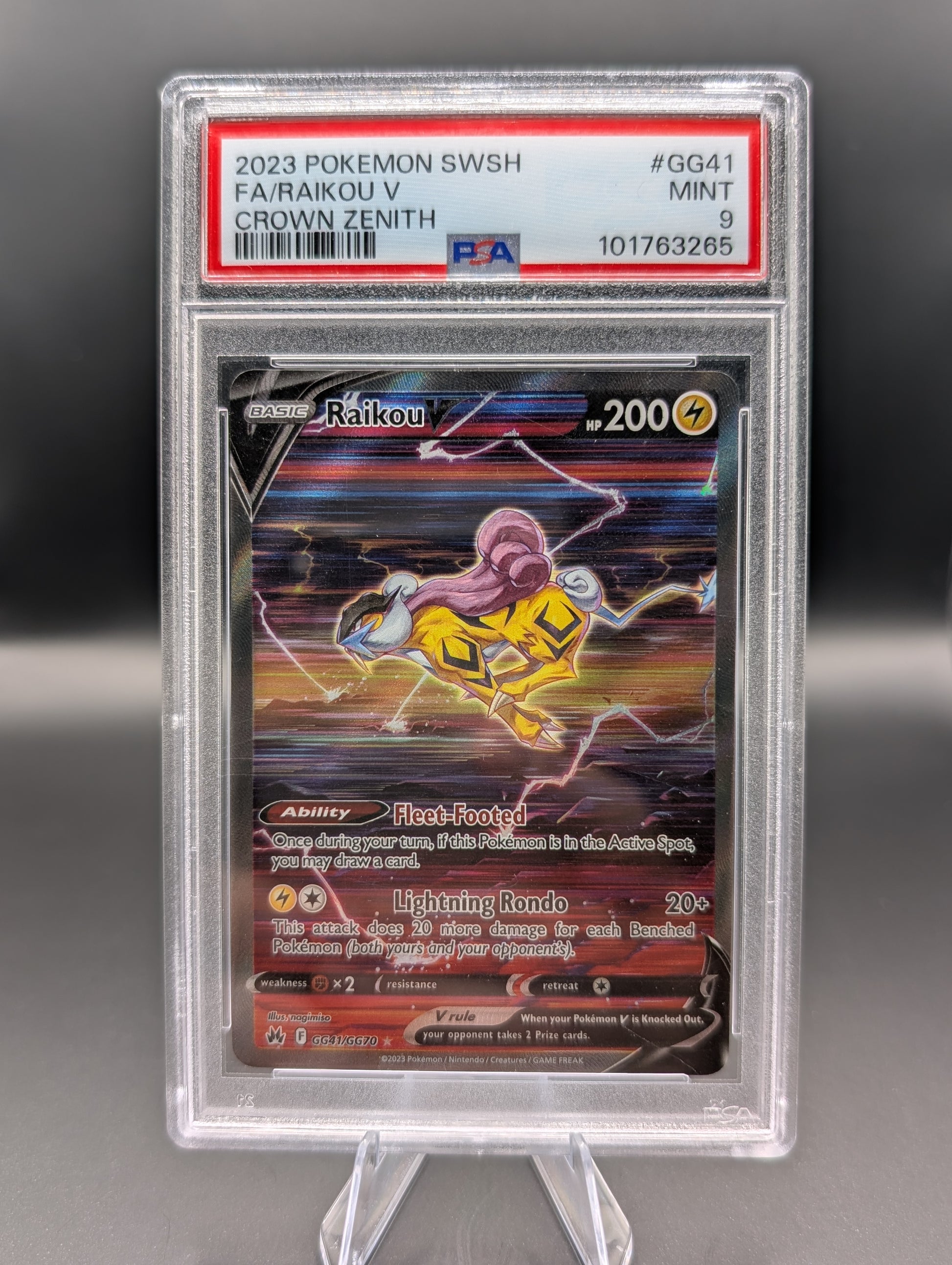 Add this Raikou V PSA 9 Galarian Gallery to your collection today and capture one of the most electrifying cards from Crown Zenith!